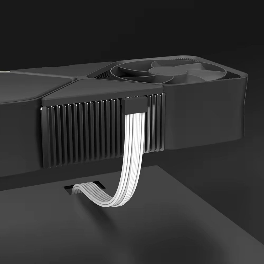 Elastyczna przejściówka w oplocie została wykonana z grubego przewodu 16 AWG co umożliwia bezpieczne zasilanie wydajnych kart graficznych, w zestawie dołączone są 3 grzebienie do estetycznego ułożenia kabli. Adapter kompatybilny jest z wszystkimi kartami ze złączami 12VHPWR