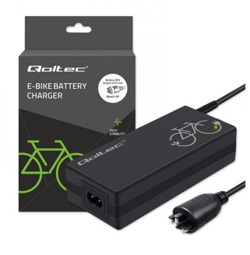 Qoltec Ładowarka Qoltec do roweru elektrycznego 36V | 42V | 2A | wtyczka Bosch 3Pin +kabel zasilający