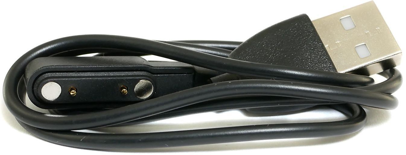 Kabel w kolorze czarnym, z jednej strony zakończony końcówką USB, z drugiej pinami, które są przyciągane magnesem