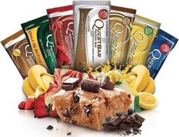 Jeden baton (60g) dostarcza zaledwie 1g cukru i aż 17g błonnika! To obecnie jeden z najlepszych batonów na rynku w skład którego wchodzi izolat białka serwatkowego, a także aminokwasy rozgałęzione BCAA (Leucyna, Izoleucyna, Walina). Quest Protein Bar pozbawiony został wszelkich zbędnych wypełniaczy, takich jak soja, gluten, czy żelatyna. Zalecany jest on zdecydowanie każdemu, kto chce podnieść swoją podaż kaloryczną bez zbędnego zwiększania cukrów prostych. Warto również zwrócić uwagę na fakt, że baton od firmy QUEST nie zawiera ŻADNYCH tłuszczów nasyconych, ani (w przeciwieństwie do innych batonów białkowych) został wzbogacony o maltitol, który zastępuje cukry w innych batonach nisko węglowodanowych.