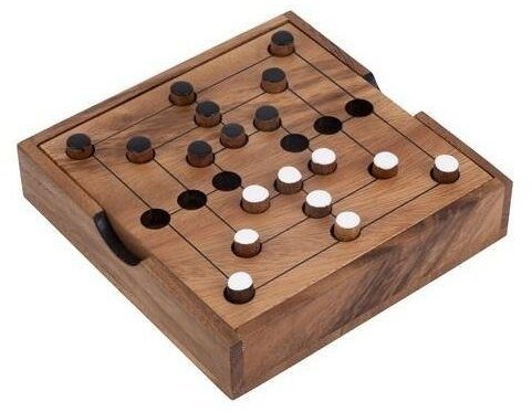 Gra planszowa wykonana z ekologicznego drewna akacjowego. Celem gry jest usunięcie pionków przeciwnika. Zestaw zawiera 18 elementów, drewniane pudełko z planszą i zasadami. Wymiary: 3 cm x 13,8 cm x 13,8 cm.