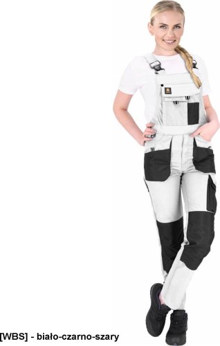 R.E.I.S. OX-FIO-B - Spodnie ochronne ogrodniczki FIO, damskie - biało-czarno-szary 42