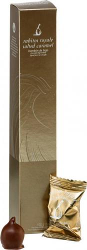 Rabitos Royales La Higuera Hiszpańskie Figi Nadziewane w Czekoladzie o Smaku Solonego Karmelu "Bombon de Chocolate con Leche con Higo Relleno con un 40% de Trufa de Chocolate con Leche Sabor Caramelo Salado" Rabitos Royales La Higuera 95g