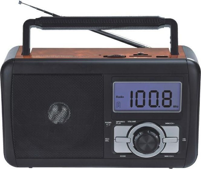 DARTEL RD-60 Przenośny radioodbiornik akumulatorowy Kolor jasny brązowy Przenośny odbiornik radiowy z zakresem fal FM ultrakrótkich Odtwarzacz MP3 Elektroniczne strojenie- wyszukiwanie stacji radiowych Możliwość nagrywania na nośniku USB lub karcie SD Wyświetlacz podświetlony na niebiesko Zasilanie: wbudowany akumulator, baterie suche 4xR20 Ładowanie akumulatora z sieci ~230V/50Hz Czas pracy akumulatora: - radio: około 6-8 godzin - odtwarzanie plików Mp3: około 2-3 godziny Gniazdo do podłączenia słuchawek (3,5mm) Gniazdo USB do podłączenia nośnika USB Gniazdo SD do podłączenia karty pamięci SD zakres fal: FM (UKF) 88MHz- 108 Mhz moc głośnika: 5W, 8Ohm zasilanie: - akumulator 8V, 1000mA - baterie R20, 4sztuki ładowanie akumulatora z sieci ~230V/50Hz czas ładowania akumulatora: około 8 godzin czas pracy akumulatora: - radio: około 6-8 godzin - odtwarzacz Mp3: około 2-3 godziny średnica wtyczki/ gniazda słuchawkowego: typ jack, 3,5mm USB 2.0 / SD do 32GB