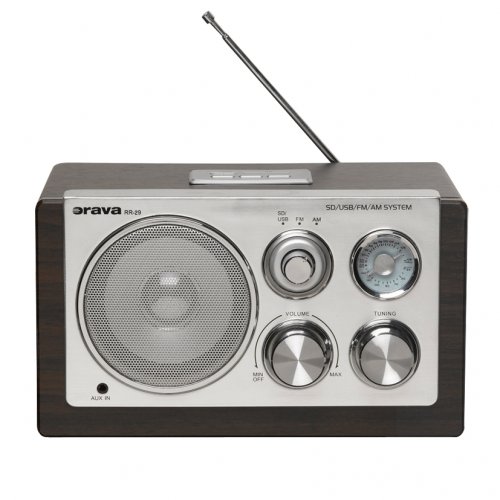 Radio Orava RR-29 A radio, 1 x 3,5W, AM / FM radio, USB, wejście AUX, karta SD, brązowy / srebrny