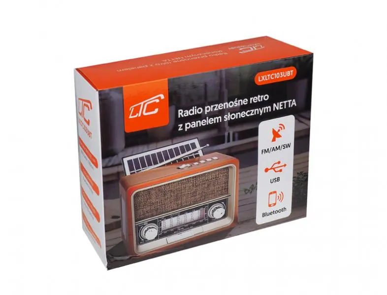 Radio przenośne z panelem solarnym LTC NETTA RETRO Bluetooth USB latarka