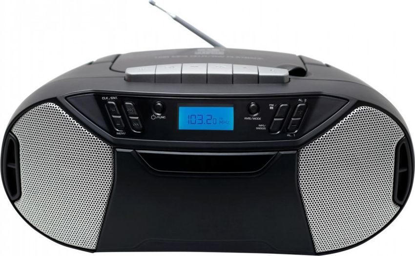 Radio FM z możliwością zaprogramowania 30 stacji. Odtwarzacz MP3 CD - Odtwarzacz / nagrywarka kasetowa. Wyposażone w wejście USB do odtwarzania plików MP3. Podświetlany wyświetlacz, wejście 3,5 mm AUX-IN oraz wejście słuchawkowe (słuchawki nie są dołączone). Zasilanie sieciowe 230 V lub baterie 6 x 1,5 V (LR14) - (brak w zestawie).
