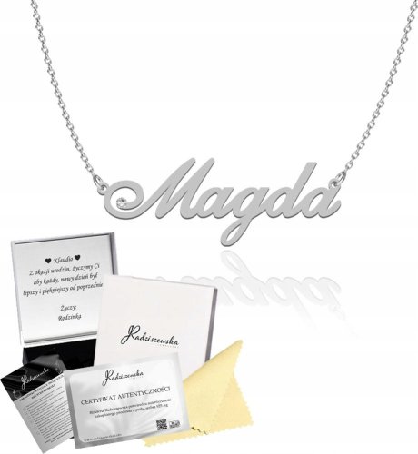 Radziszewska Jewellery Naszyjnik Srebrny z imieniem MAGDA Łańcuszek Prezent 925 ŻYCZENIA GRATIS
