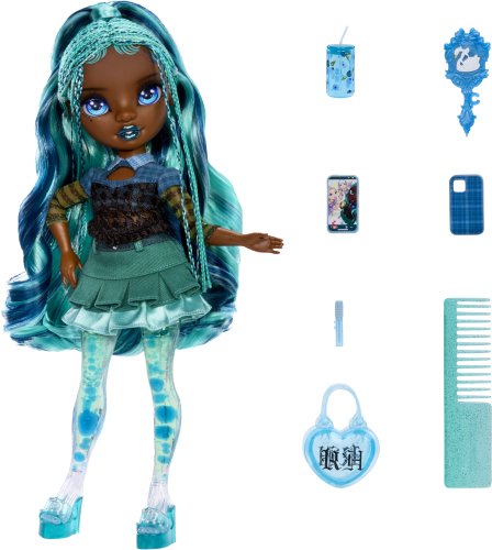 Lalka Rainbow High Sparkle & Shine Misty to stylowa postać o wysokości 28 cm, która zachwyca swoimi niebieskimi włosami oraz unikalnym stylem. To doskonały wybór dla dzieci powyżej 3. roku życia, które pragną odkrywać świat mody i kreatywności.