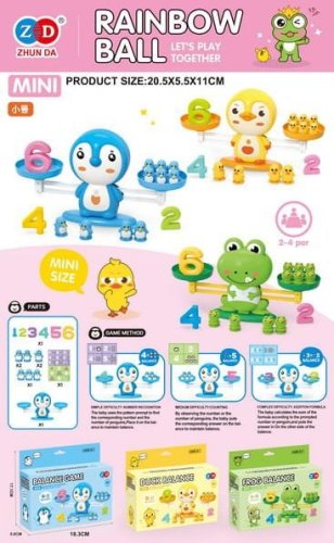 Rybka gra w Zręcznościowa Waga Balansująca Kaczka dla dzieci od 3-go roku życia. Ta wspaniała gra, zapewni Twojemu dziecku, długie godziny edukacyjnej zabawy. Gra składa się z wagi szalkowej z uroczą kaczką w środku, odważników w postaci małych kaczek i cyferek oraz karty z zadaniami matematycznymi. Po jednej stronie wagi układamy cyferki a po drugiej odpowiednią ilość kaczek, tak aby zachować równowagę. Gra rozwija umiejętności dodawania, logiczne myślenie, wyobraźnię i kreatywność. Dziecko poznaje podstawy matematyki i fizyki.