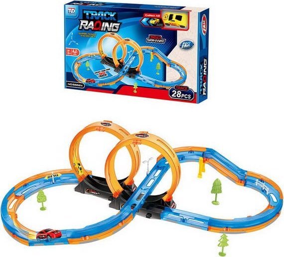 Ten wyjątkowy tor wyścigowy wyróżnia się dwiema pętlami 360 stopni, które dodają adrenaliny każdemu wyścigowi. Dzieci mogą obserwować, jak ich pojazd pokonuje zakręty i wzniesienia, co sprawia, że każda zabawa staje się niezapomnianym przeżyciem. Tor jest łatwy do złożenia, co umożliwia szybkie rozpoczęcie zabawy.