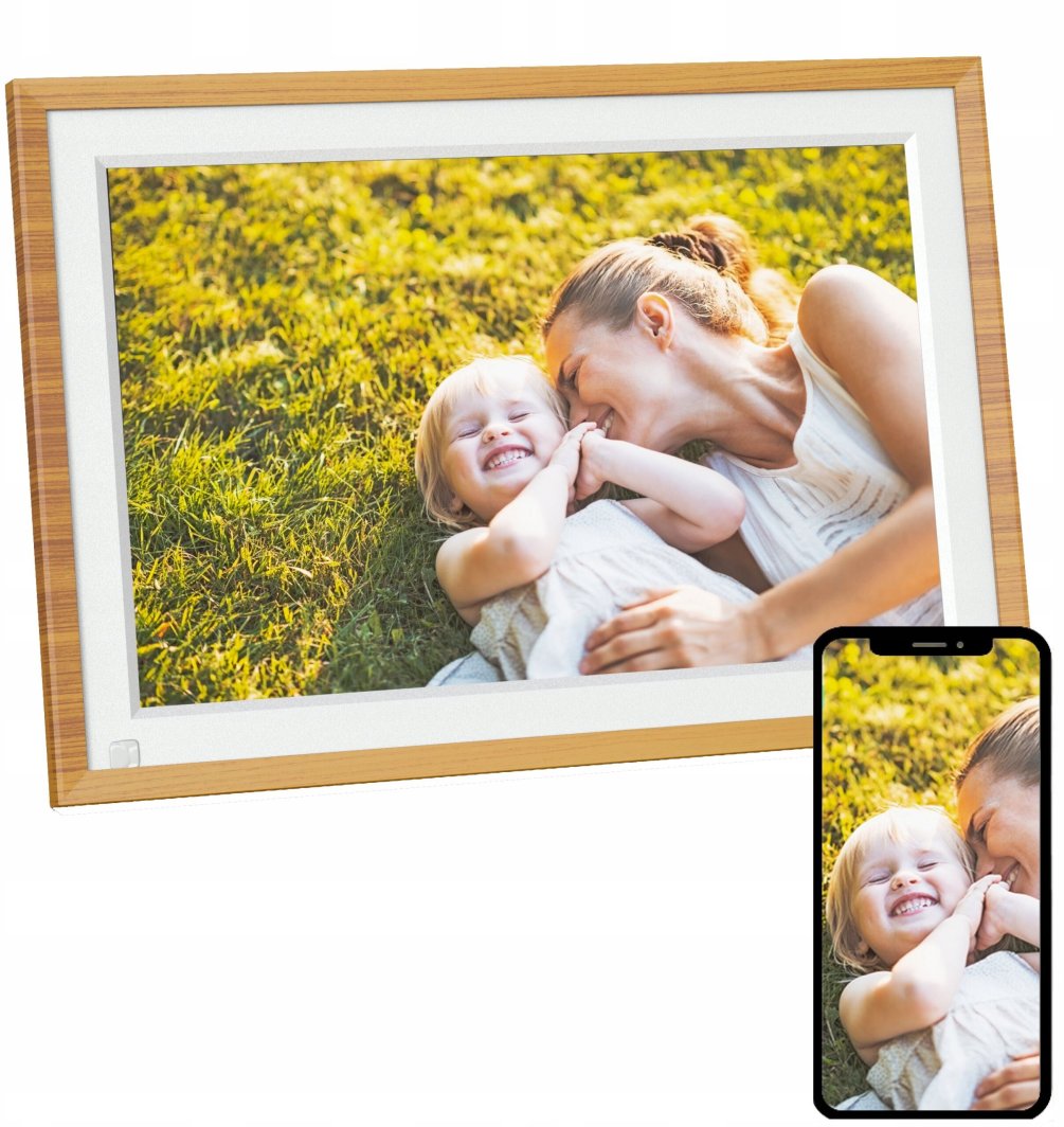 Drewniane wykończenie ramki doskonale wpasowuje się w różne style wnętrz, dodając im elegancji i ciepła. To nie tylko urządzenie do wyświetlania zdjęć, ale także stylowy element dekoracyjny.