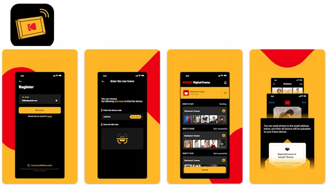 Za pomocą aplikacji KODAK Digital Frame możesz z łatwością przesyłać zdjęcia do wszystkich podłączonych ramek cyfrowych KODAK. Aplikacja jest kompatybilna z Google Photos, co umożliwia natychmiastowe dzielenie się chwilami z bliskimi oraz dodawanie podpisów do zdjęć, czyniąc je jeszcze bardziej osobistymi.