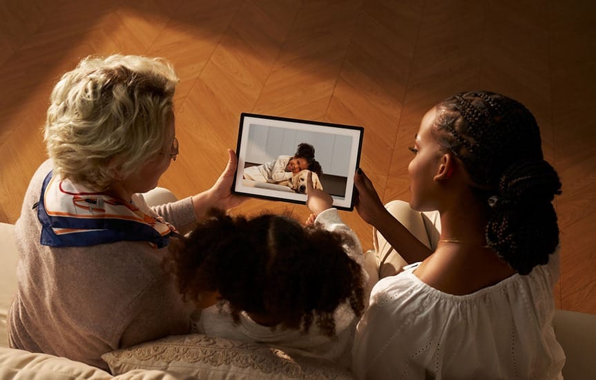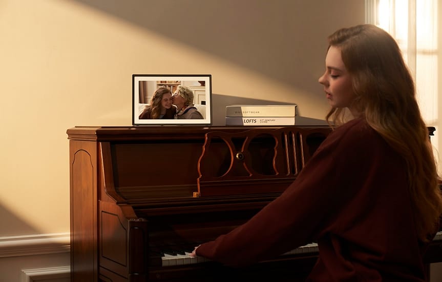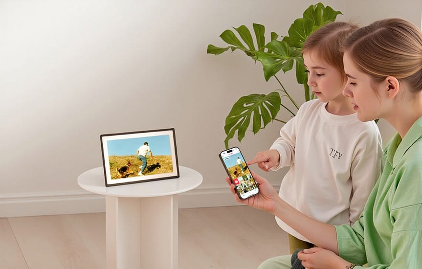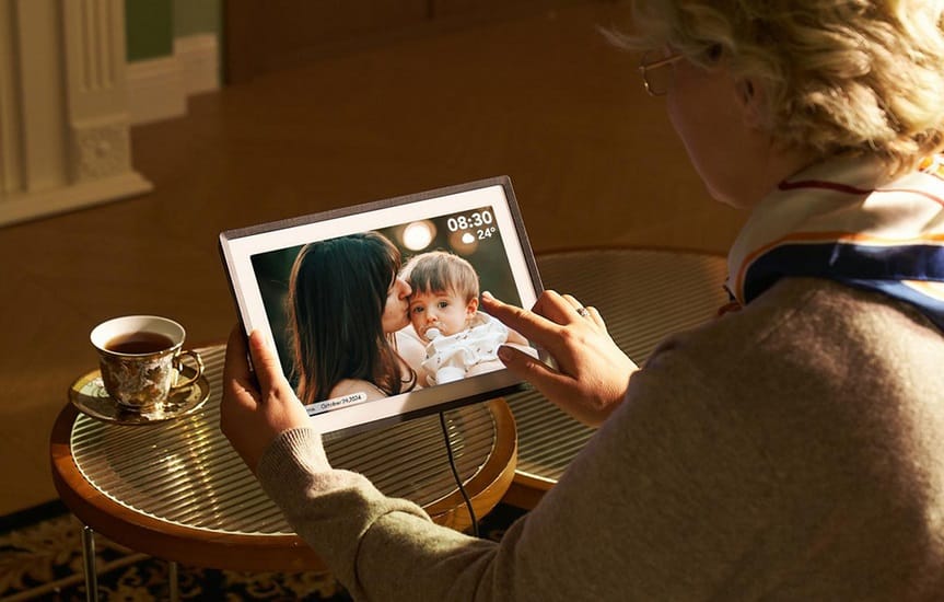 Urządzenie pozwala na natychmiastowe reagowanie na otrzymane zdjęcia i filmy – wystarczy dotknąć ekranu i wysłać emotikony, takie jak serce czy uśmiech. Funkcja działa bez konieczności logowania się do mediów społecznościowych, co ułatwia komunikację z bliskimi. Do jednej ramki może zostać dodanych nawet 512 użytkowników, co pozwala rodzinie i znajomym z całego świata wspólnie budować galerię wspomnień.