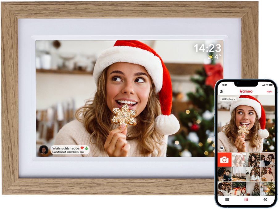 Dzięki aplikacji Frameo, dostępnej na urządzenia z systemem iOS i Android, przesyłanie zdjęć i filmów do ramki Rollei 50014 jest niezwykle proste. Możesz zdalnie dodawać nowe treści, co sprawia, że Twoje wspomnienia są zawsze na wyciągnięcie ręki.