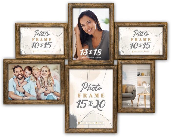 Ramka umożliwia umieszczenie aż sześciu zdjęć w różnych formatach, co otwiera drzwi do kreatywnych aranżacji. Możesz w niej umieścić: