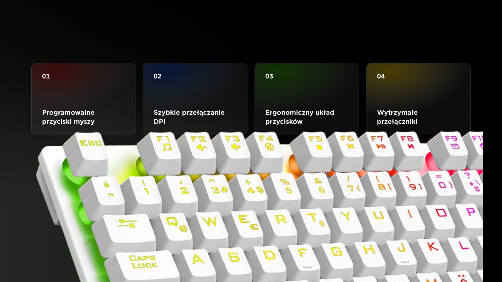 Zestaw Fortuna V2 to inwestycja w trwałość, która wytrzyma tysiące godzin rozgrywki. Przełączniki myszy o żywotności do 30 milionów kliknięć oraz obudowa wykonana z odpornego tworzywa ABS gwarantują, że zestaw zachowa swoją czułość i wygląd nawet po wielu sezonach grania. Solidny, przewód USB o długości 1,75 m zapewnia stabilną transmisję sygnału bez żadnych opóźnień, co jest kluczowe w grach online.