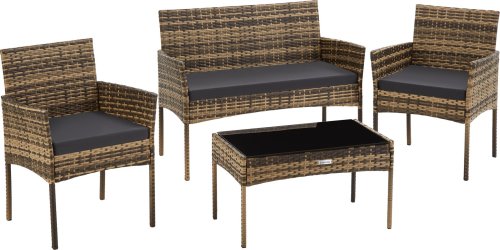 Rattanowy zestaw ogrodowy Palese od Tectake to doskonały wybór dla tych, którzy pragną połączyć wygodę z estetyką na świeżym powietrzu. Zestaw, przeznaczony dla czterech osób, składa się z dwóch komfortowych foteli oraz sofy, które zapewnią relaks i radość podczas spotkań z bliskimi. Jego elegancki design sprawia, że idealnie wpasuje się w każdą przestrzeń – na tarasie, balkonie czy w ogrodzie.