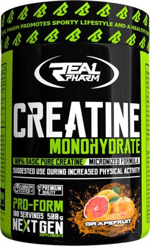 Creatine Real Pharm 500g to czysty i niezawierający żadnych domieszek suplement, w którego składzie znajdziesz jedynie najwyższej jakości monohydrat kreatyny oraz wysoką dawkę L-tauryny.