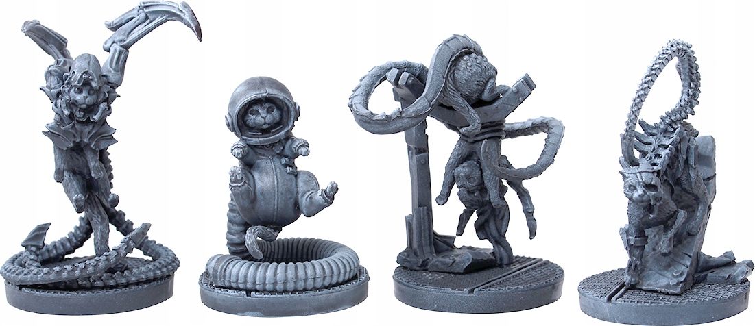 Space Cats to zestaw 4 figurek kocich astronautów wraz z kartami, stanowiący kolekcjonerski dodatek do gry Nemesis. |