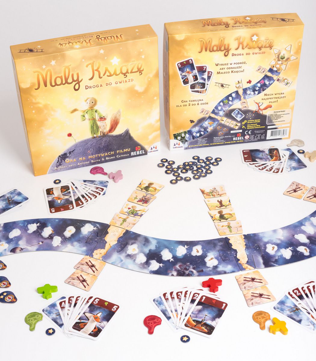 W grze Mały Książę: Droga do Gwiazd wyruszasz w wielką podróż z domku Dziadka na planetę Małego Księcia. Przesuwaj swój pionek po podniebnej trasie, zbierając gwiazdy. Samolot przemieszczasz dzięki kartom Lisa. Każdy gracz dysponuje tym samym zestawem kart na początku gry. W zależności od chmury, na której wyląduje Twój samolot, możesz zdobyć więcej kart, które pozwolą Ci podróżować dalej. Jeśli zatrzymasz się na chmurze, która jest już zajęta przez przeciwnika, zabierasz kartę z jego ręki i dajesz mu jedną ze swoich, przez siebie wybraną.