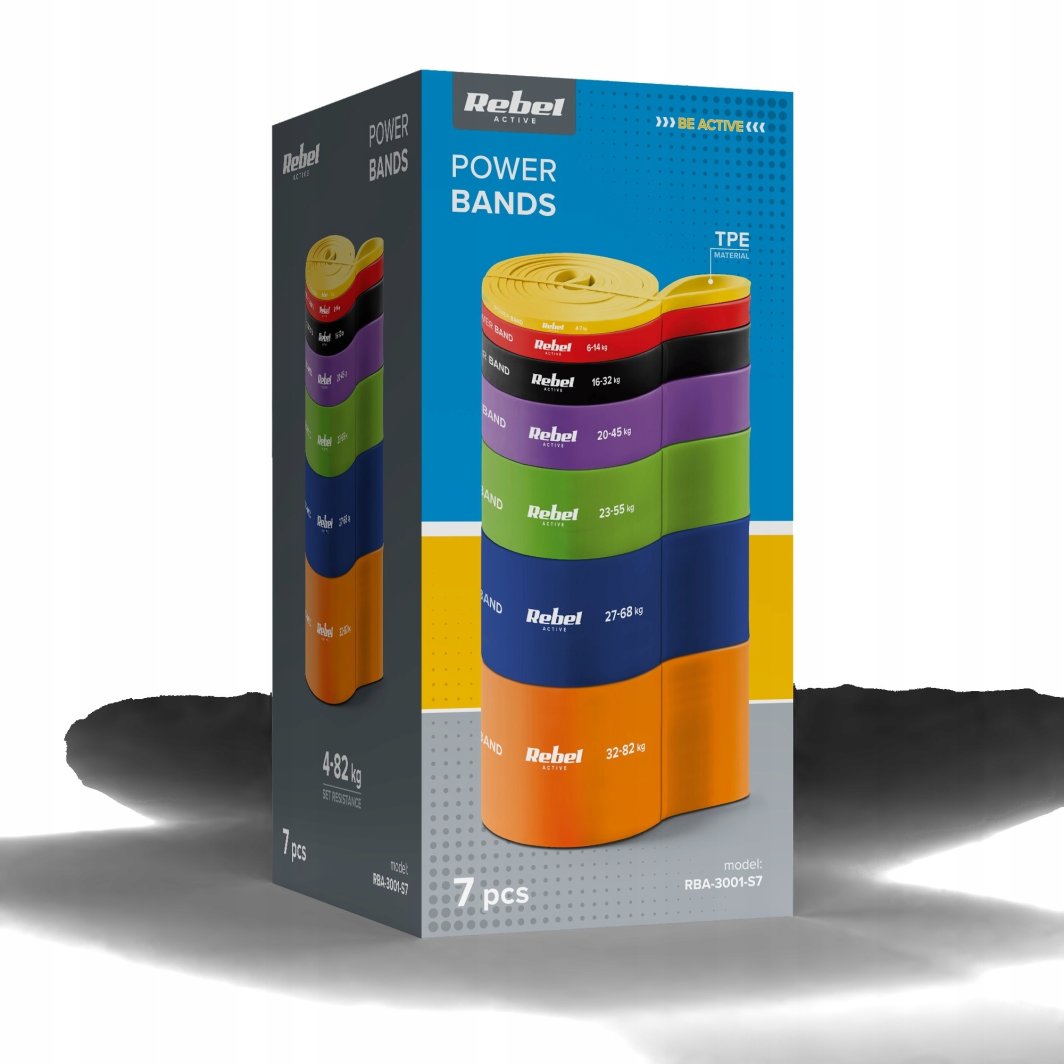 Rebel Zestaw gum do ćwiczeń TPE - Power Band PT-S7, 4-82 kg, 7 gum TPE