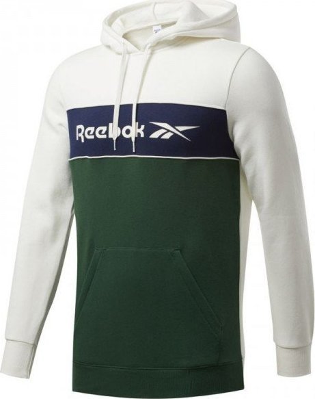 Bluza męska Reebok Classic Linear Hoodie biało-zielona GD0436 - Męska bluza Reebok prezentuje modny design inspirowany oldshoolowymi projektami. - Blokowe zestawienie kolorów tworzy oryginalny fason, zwracający uwagę. - Wykonana z bawełny zapewnia komfort w czasie noszenia. - Obszerny kaptur uchroni przed deszczem i wiatrem, a kieszeń kangurka pozwoli ogrzać dłonie. - Bez tej bluzy modne stylizacje nie istnieją! Materiał: - 80% bawełna, 20% poliester
