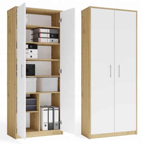 Regał Biurowy OLIV 2D 2 Drzwi Do Biura Do Gabinetu Salonu DĄB ARTISAN BIEL