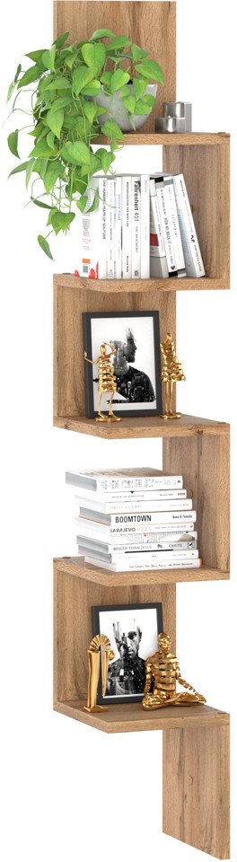 Regał wiszący na książki Zigi w odcieniu dąb wotan to nowoczesny mebel, który harmonijnie łączy funkcjonalność z estetyką. Jego smukła konstrukcja sprawia, że jest idealnym rozwiązaniem do niewielkich przestrzeni, maksymalizując ich potencjał użytkowy. Dzięki prostemu i nowoczesnemu designowi, regał doskonale wpasowuje się w różnorodne style aranżacyjne, co czyni go uniwersalnym dodatkiem do każdego wnętrza.