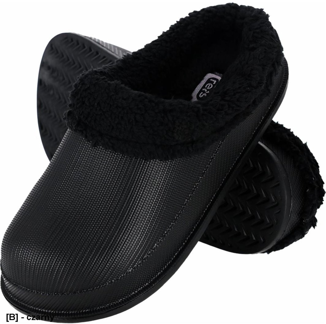Reis BCFLUFF Damskie klapki klapki z tworzywa EVA ocieplane futerkiem, wsuwane, wyprofilowane - czarny 37