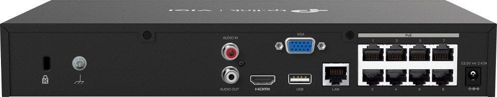 Rejestrator NVR jest wyposażony w 8 portów 10/100Mb/s PoE+, a każdy z nich oferuje do 30 W mocy zasilania. Urządzenie jest stworzone do tego, aby jednocześnie doprowadzać dostęp do sieci i zasilanie PoE za pomocą jednego kabla Ethernet. Dzięki temu oferuje wygodną możliwość wdrożenia różnych instalacji monitoringu dla małych firm, takich jak sklepy, magazyny, restauracje, czy instytucje finansowe.