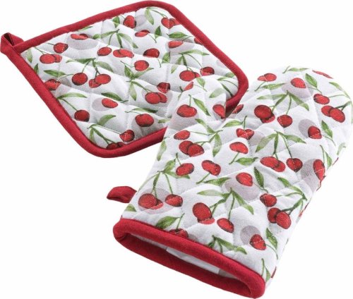 Rękawica i podkładka kuchenna RUBY to eleganckie oraz funkcjonalne akcesoria, które harmonijnie łączą użyteczność z estetyką. Wykonane z materiałów najwyższej jakości, gwarantują bezpieczeństwo podczas gotowania, umożliwiając bezpieczne wyjmowanie gorących potraw z piekarnika. Motyw wiśni na jasnym tle z czerwonymi i zielonymi akcentami dodaje uroku każdej kuchni, sprawiając, że te akcesoria są nie tylko praktyczne, ale również stylowe.
