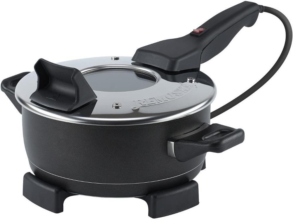 Remoska została zaprojektowana z myślą o trwałości i funkcjonalności. Misa wykonana z aluminium pokryta jest nieprzywierającą powłoką Teflon® Classic, co ułatwia czyszczenie i zapobiega przypalaniu potraw. Pokrywa z nierdzewnej stali z szklanym okienkiem dodaje elegancji i nowoczesności, a jednocześnie jest praktyczna w użytkowaniu.