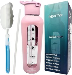 Revity Szklana butelka na wodę bidon z dziubkiem i miarką w silikonowym etui