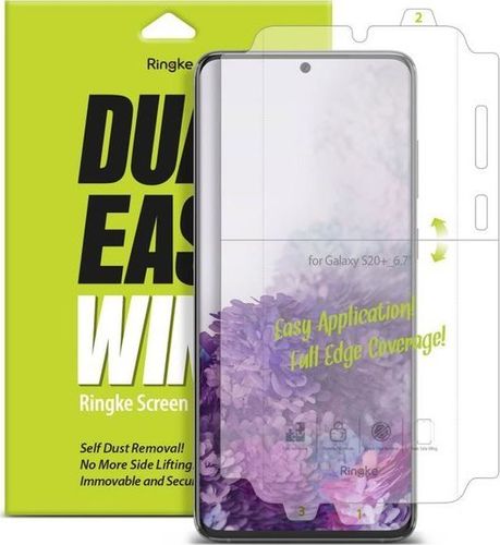 Zestaw dwóch folii ochronnych firmy Ringke Dual easy film to produkt najwyższej jakości, który został idealnie dopasowany pod wyświetlacz Samsung Galaxy S20 Plus. Firma Ringke wyszła naprzeciw oczekiwaniom klienta i opatentowała system instalacji, który jest prosty oraz instynktowny, dzięki czemu każdy użytkownik smartfona będzie w stanie samodzielnie zaaplikować folię do ekranu urządzenia Samsung Galaxy S20 Plus.