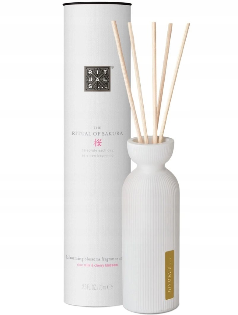 Zapach do domu z patyczkami Fragrance Mini Sticks o pojemności 70 ml to elegancki dyfuzor zapachowy marki Rituals, zaprojektowany z myślą o aromatyzowaniu mniejszych przestrzeni. Produkt wprowadza subtelny i długotrwały aromat, idealny do łazienek, przedpokoi czy sypialni. Oferuje on nie tylko przyjemność dla zmysłów, ale także stanowi estetyczny element dekoracyjny.