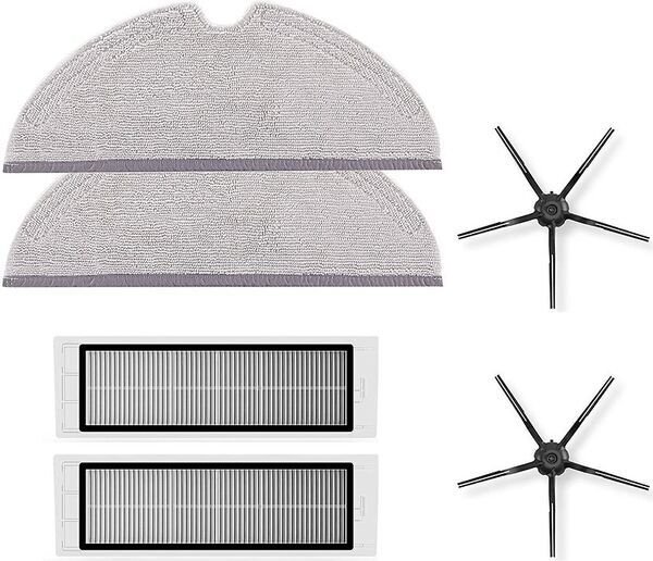Zestaw akcesoriów Roborock, 2x filtr, 2x chusteczka do mopowania, 1x szczotka boczna, biały.