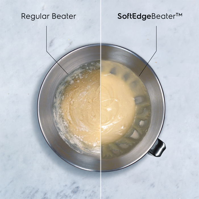 Końcówka do mieszania SoftEdgeBeater™ z wbudowaną silikonową łopatką zapewnia optymalne efekty mieszania w płynnie przebiegającym procesie – bez pomijania składników.