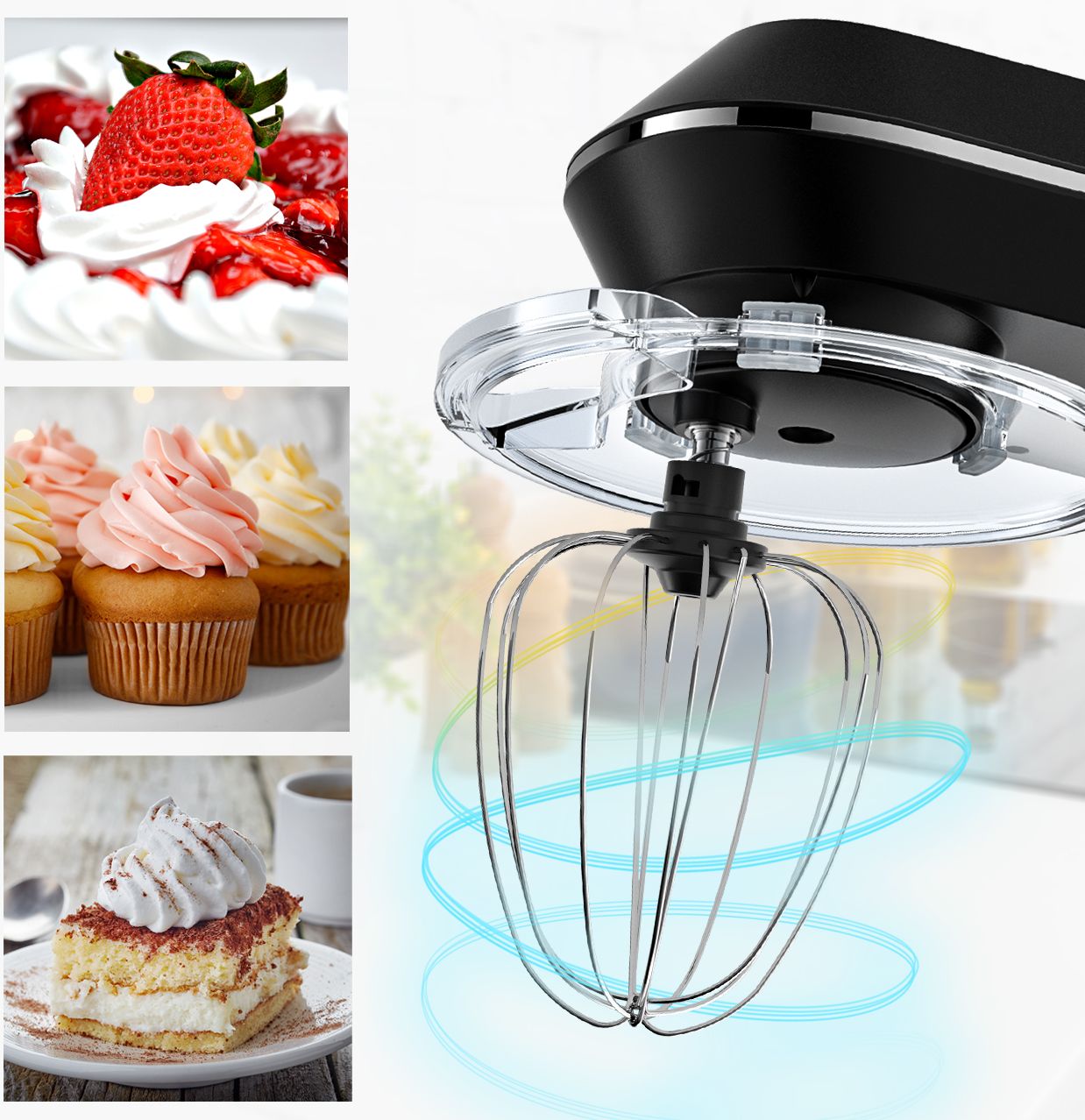 Dzięki osłonie przeciwbryzgowej zarówno Ty jak i Twoja kuchnia będziecie zawsze czyści. Od teraz zapomnij o rozbryzganej śmietance czy mleku wszędzie wokół miksera, na blacie i ścianie! Osłona posiada otwór, dzięki któremu można dołożyć składniki, nie przerywając pracy miksera.