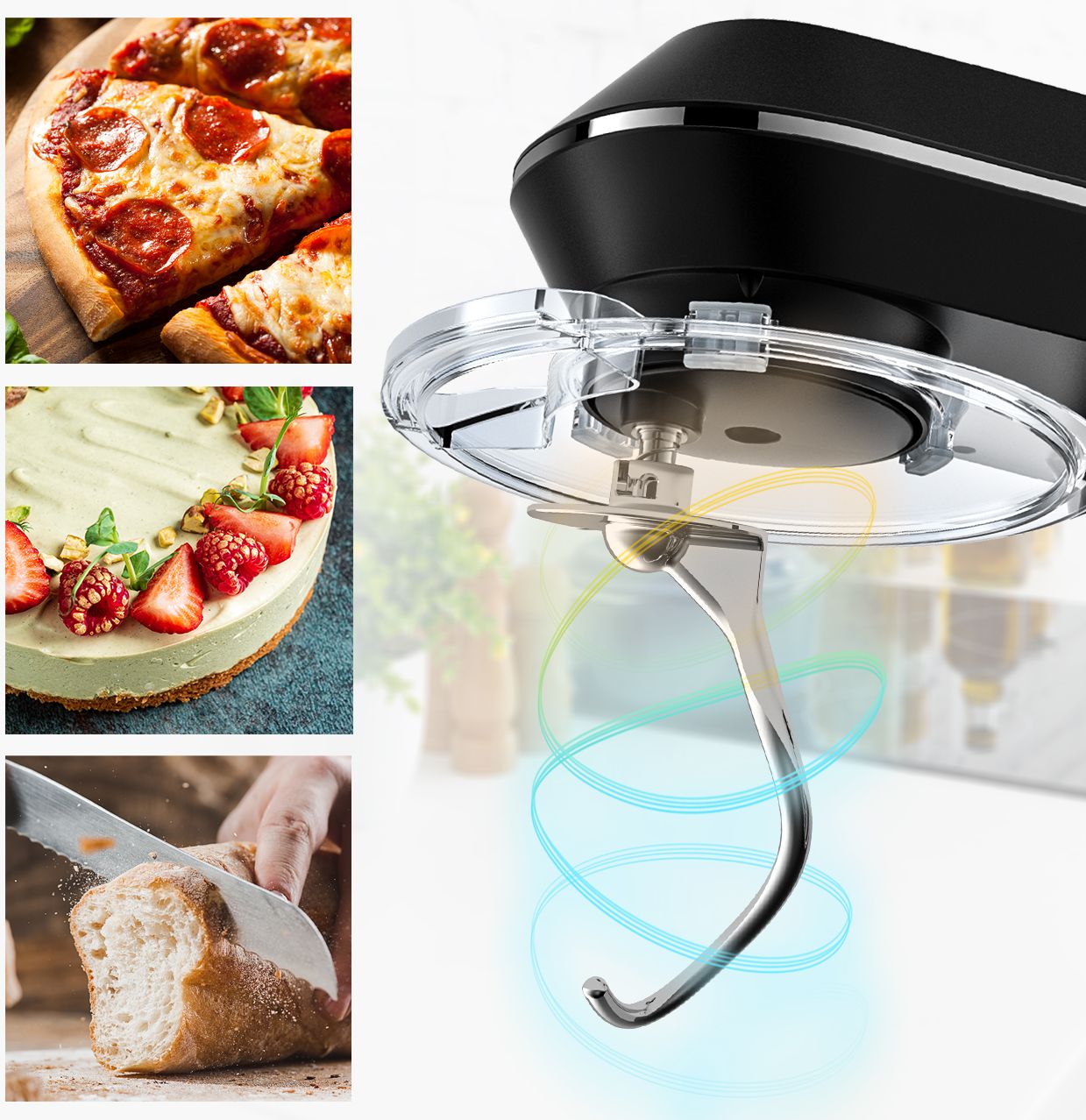 Dzięki mocnemu, metalowemu hakowi do zagniatania już nie trzeba wyrabiać ciasta za pomocą własnych rąk.