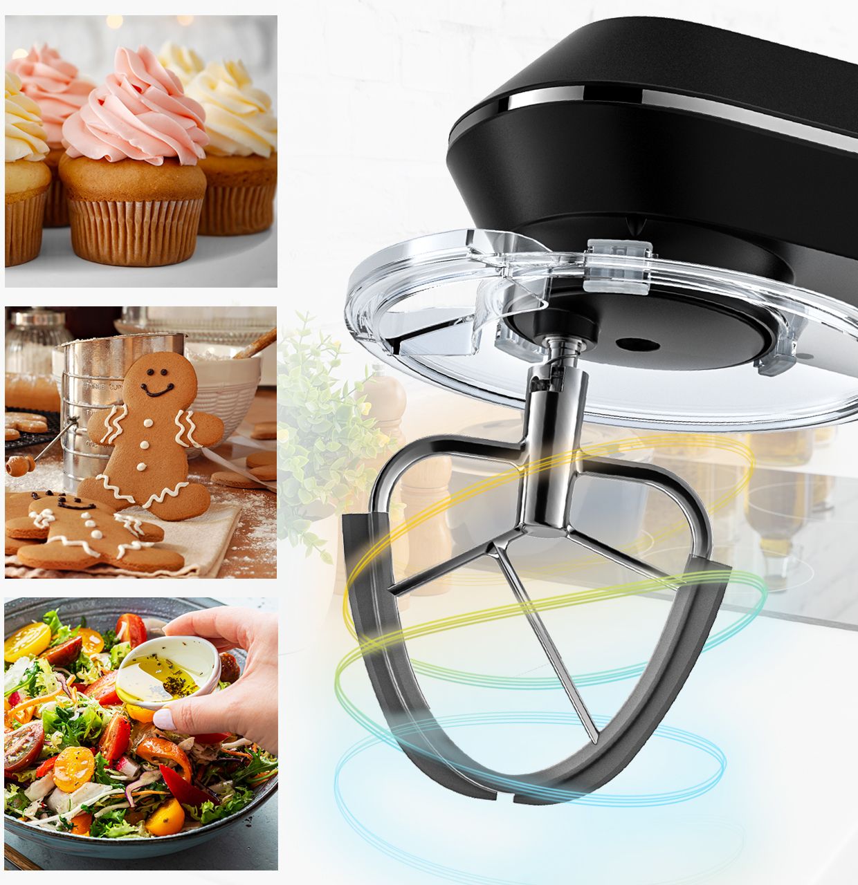 Płaskie metalowe mieszadło to niezastąpiony pomocnik podczas przygotowywania różnego rodzaju ciast (ucieranych, kruchych, piaskowych), ciasteczek oraz wszelkiego rodzaju farszów, puree, a także innych dań.