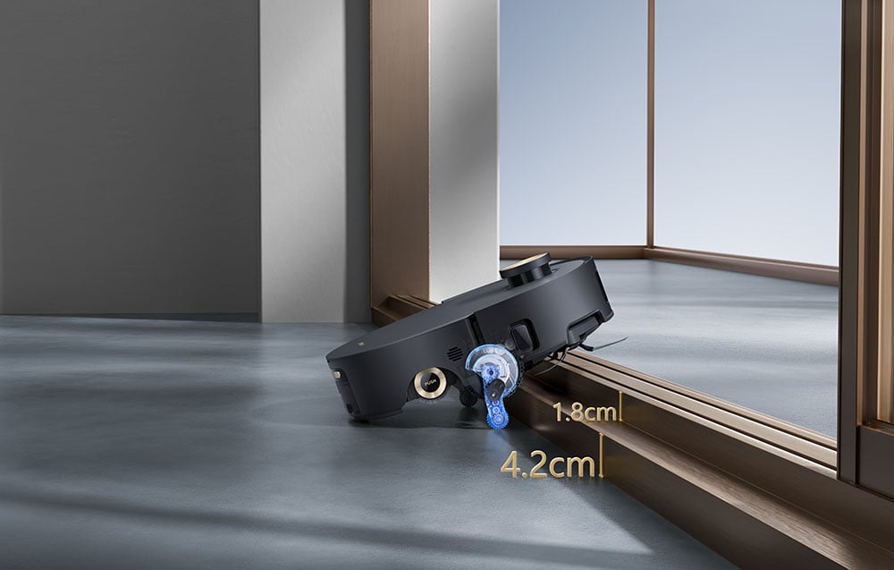 Robot porusza się płynnie po całym mieszkaniu, pokonując progi do 6 cm wysokości. Dzięki systemowi nawigacji bionicznej radzi sobie z prowadnicami drzwi, podłogami na różnych poziomach czy meblami o nieregularnych kształtach. Testowany ponad 30 000, mechanizm ten zapewnia stabilne, ciche i bezproblemowe działanie bez ryzyka zacięć.