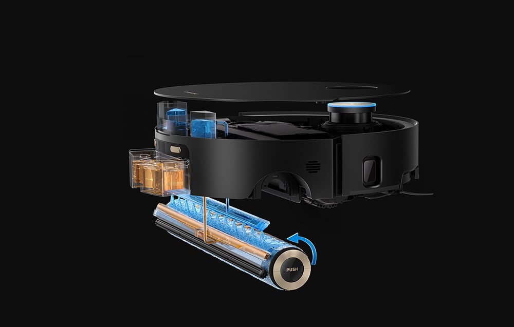 Robot automatycznie dostosowuje swoje podzespoły korzystając z pomocy TripleUp Tech. W praktyce jego rolka podnosi się na 14 mm, szczotka boczna na 10 mm, główna szczotka na 5 mm. Dzięki temu Dreame Aqua10 Ultra Roller Complete skutecznie oddziela mokre i suche zabrudzenia, nie zamaczając dywanów i nie pozostawiając smug.