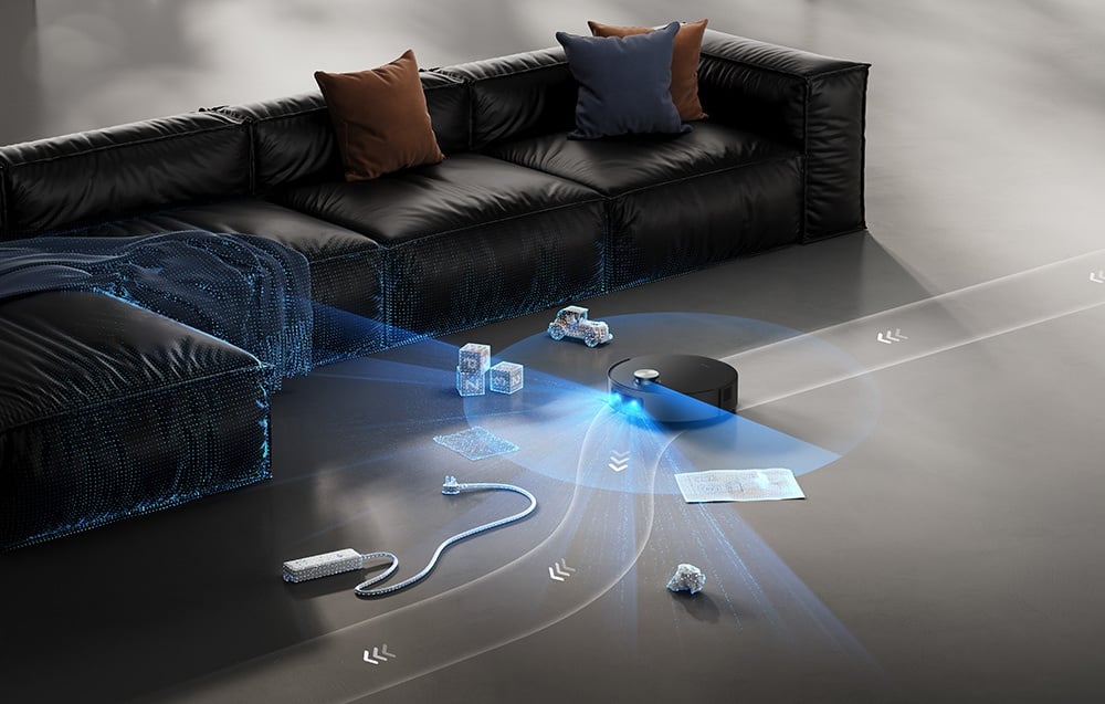 Wykorzystanie sztucznej inteligencji i systemu LDS pozwala tworzyć 360° inteligentne mapy, które eliminują martwe punkty. Kiedy czujnik LDS jest schowany, robot osiąga wysokość 98 mm, dzięki czemu może bez problemu wjeżdżać pod meble, gwarantując maksymalną dbałość o czystość nawet w trudno dostępnych miejscach i przy słabym oświetleniu.