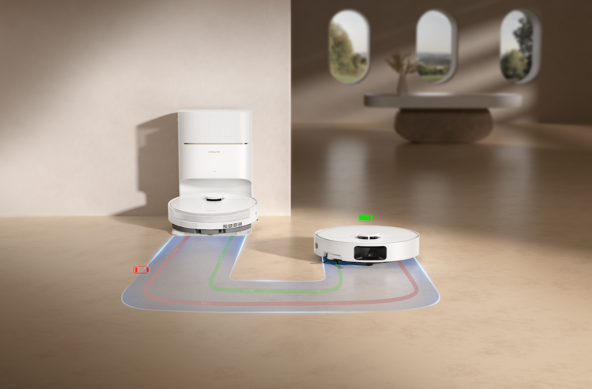 Akumulator o pojemności 5200 mAh zapewnia nawet 285 minut pracy bez przerwy. Po wyczerpaniu energii robot sam wraca do stacji ładującej, a po naładowaniu kontynuuje pracę od miejsca, w którym ją przerwał. To idealne rozwiązanie dla dużych mieszkań i domów.