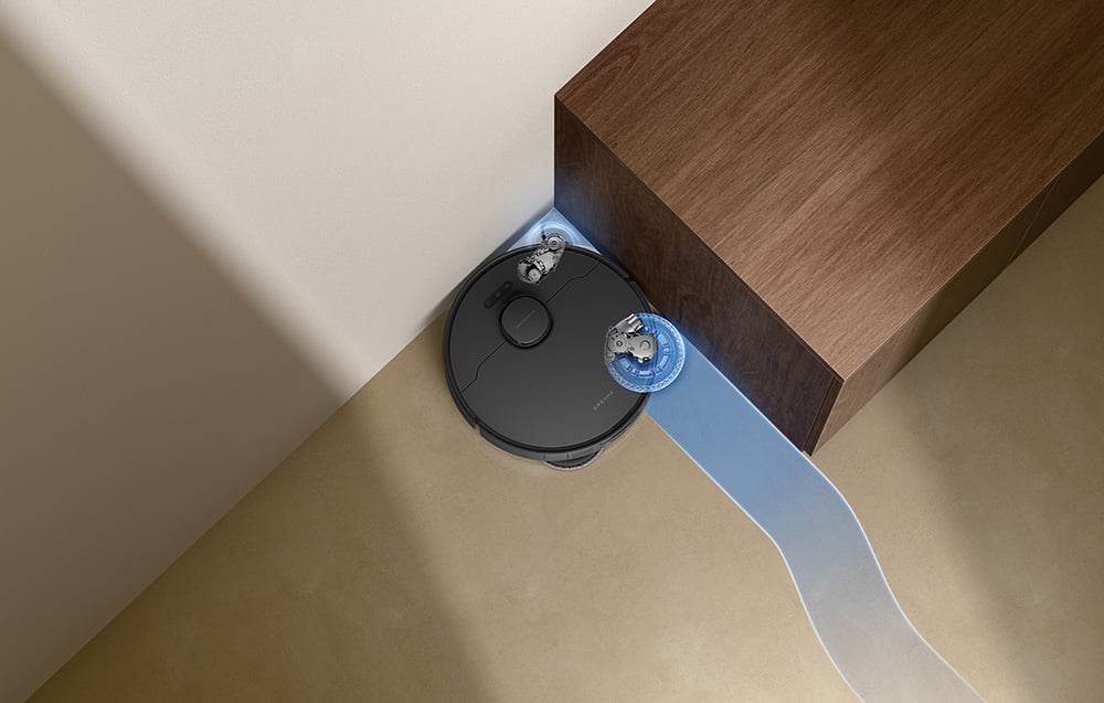 Dzięki technologii Dual Flex Arm robot skutecznie dociera do miejsc, które dotąd wymagały ręcznego sprzątania. Wysuwana szczotka boczna precyzyjnie zbiera kurz z kątów, wzdłuż ścian czy spod mebli, zapewniając pełne pokrycie powierzchni. Z kolei system MopExtend™ RoboSwing pozwala na wysunięcie padów mopujących nawet o 4 cm, co gwarantuje mycie podłóg tuż przy listwach przypodłogowych i w narożnikach.