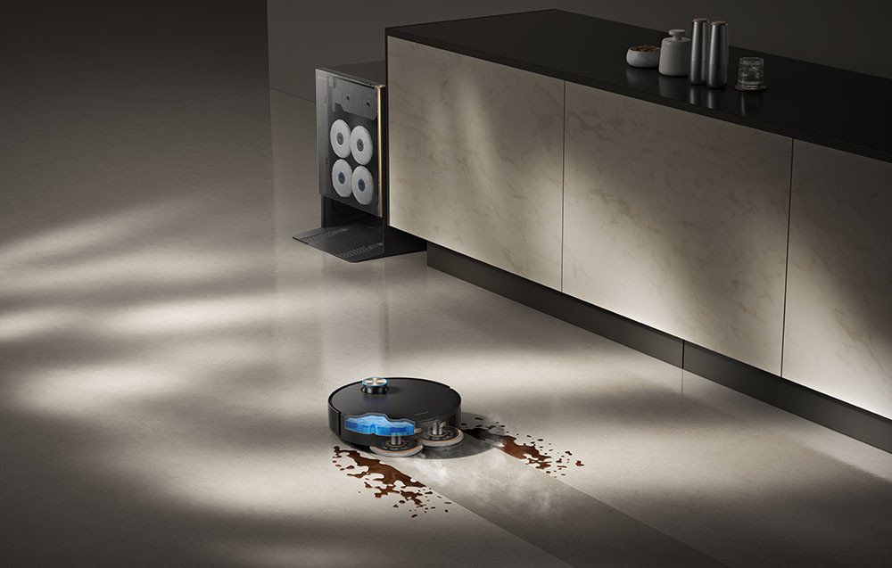 Robot został wyposażony w rewolucyjny system VersaLift z automatycznym, wysuwanym i chowanym czujnikiem DToF. W przestronnych pomieszczeniach unosi czujnik, aby w pełni skanować otoczenie w zakresie 360° i błyskawicznie planować trasę sprzątania. Gdy jednak trafia pod niskie sofy czy łóżka, mechanizm natychmiast się chowa, redukując wysokość urządzenia do zaledwie 89 mm. W takich warunkach robot wspiera się dodatkowymi kamerami AI z diodami LED, które umożliwiają mu tworzenie trójwymiarowego obrazu otoczenia i swobodne poruszanie się tam, gdzie inne urządzenia po prostu się zatrzymują.