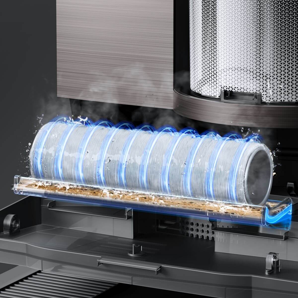 ZeroTangle 3.0, z boczną szczotką ARClean i wałkiem kierującym cyklon, gwarantuje w 100% brak splątań. „Złotospiralna” konstrukcja umożliwia szczotce bocznej skutecznie opierać się owijaniu włosów, jednocześnie zwiększając efektywność sprzątania. Na szczotce głównej struktura Triple-V oraz zintegrowany spiralny grzebień aktywnie odpychają i rozplątują kosmyki — zapewniając nieprzerwane sprzątanie i minimalną konserwację.