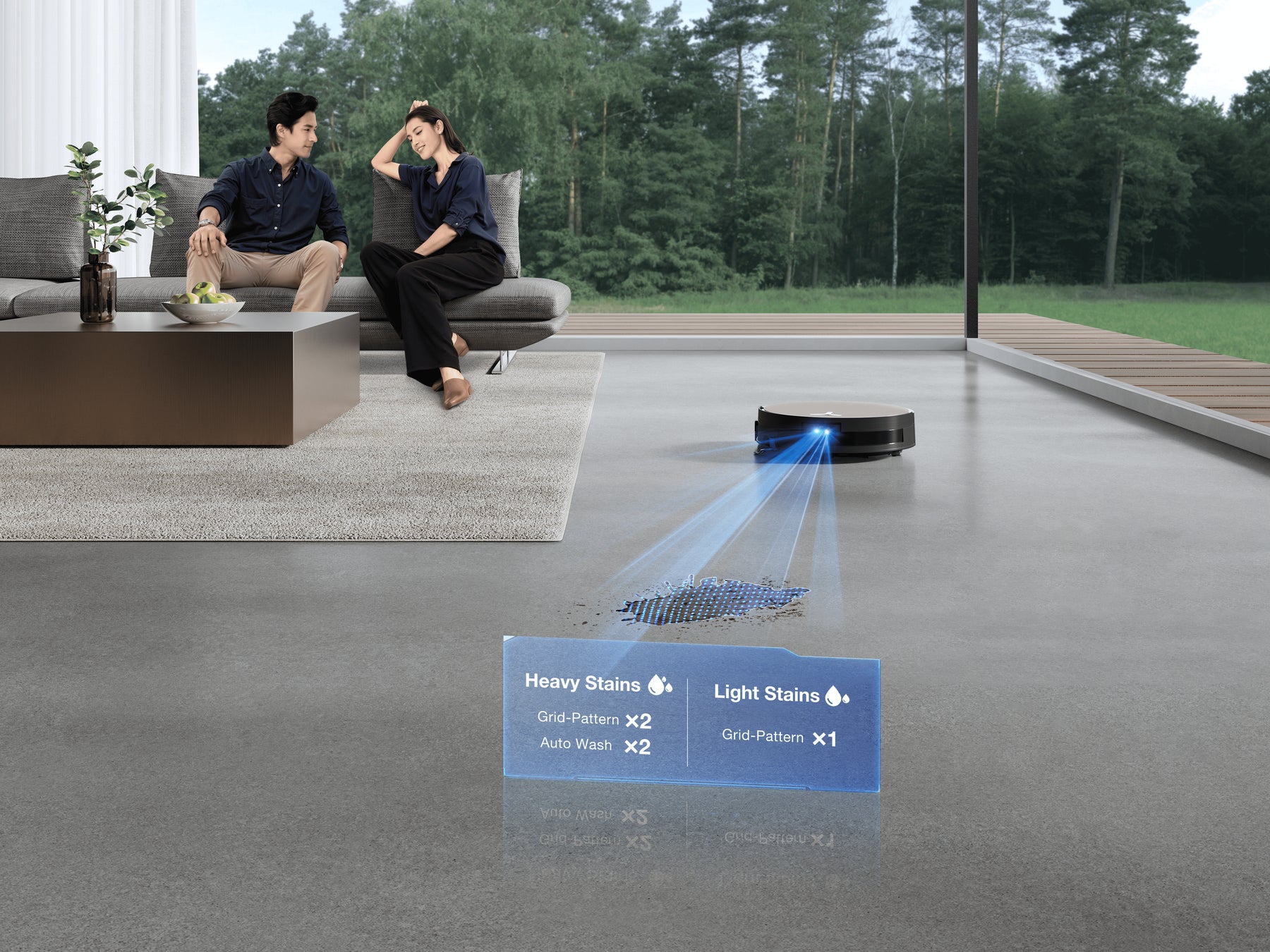 Funkcja AI Stain Detection pozwala DEEBOT-owi dostosować strategię sprzątania do rodzaju i intensywności zabrudzeń. W przypadku lekkich plam robot wykonuje szybkie ponowne mycie. Przy trudniejszych zabrudzeniach aktywuje tryb Deep Re-mop — realizując dwa przejazdy po wzorze krzyżowym i jednocześnie płucząc mop przy użyciu silnego środka czyszczącego, aby wyeliminować plamy i zapobiec krzyżowemu zanieczyszczeniu.