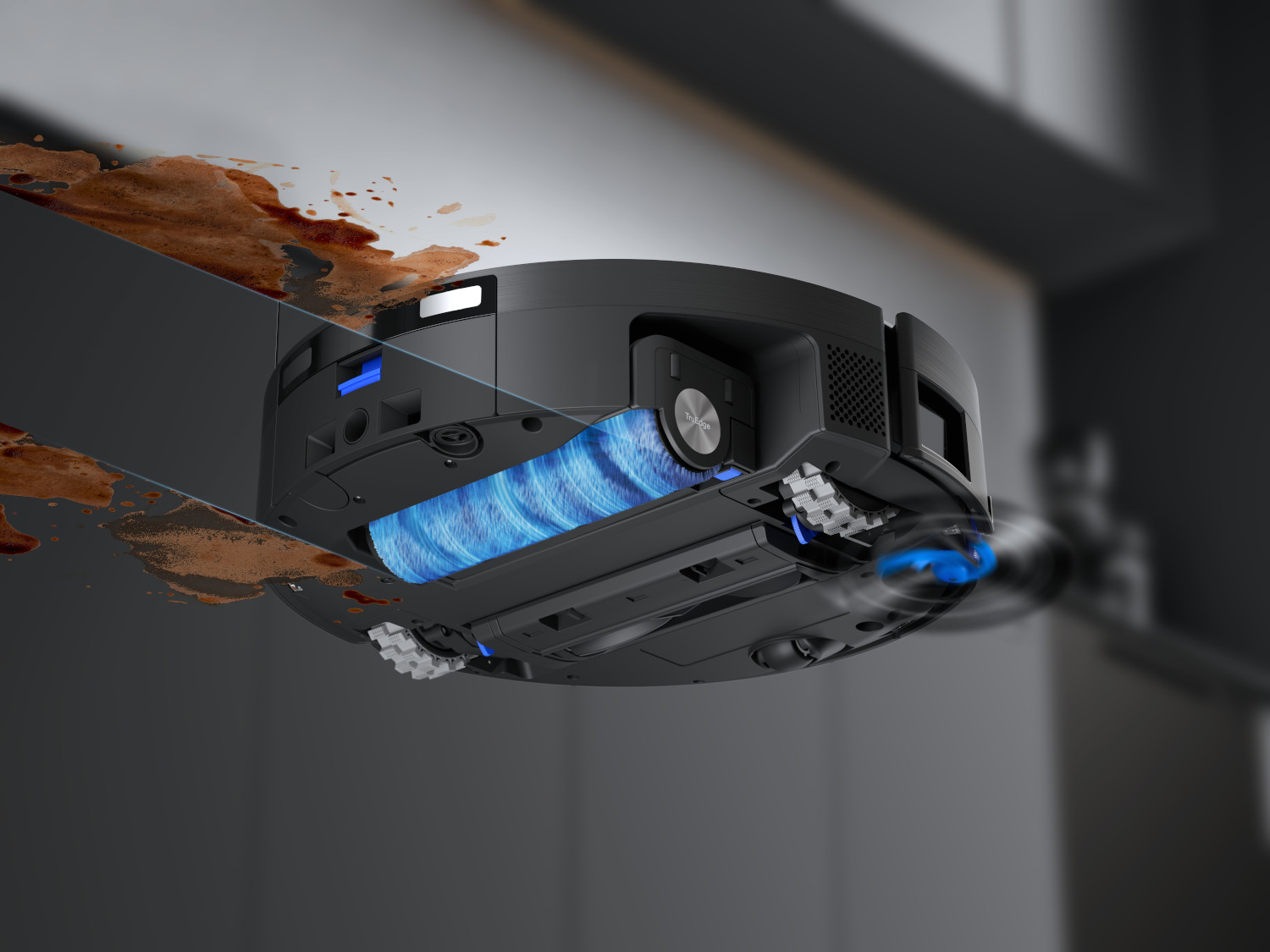 Ulepszona technologia TruEdge 3.0 Extreme Edge Cleaning wykorzystuje wałek zawieszony na poduszce powietrznej z wydłużonym zasięgiem 1,5 cm. Zmienny system poduszki dostosowuje się w czasie rzeczywistym, gwarantując perfekcję „od ściany do ściany”, a stała szczotka boczna wychwytuje zanieczyszczenia przy krawędziach — osiągając maksymalne pokrycie sprzątaniem bez jakiegokolwiek wysiłku użytkownika.